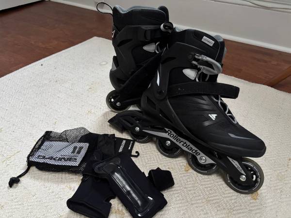 RollerBlade Sz US 10, UK 9, EU 43, CM 28.0 Inline skates by Rollerblade. No more than 90min of use. That New Skate Aroma still present! Comes with New Pair of XS Dakine Wristguards. Wheels and brake...