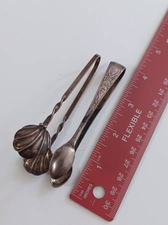 Pair of sugar tongs. With twisted handles is sterling silver, an other silver plated. Pls check out all pictures. Cash only. Buyer picks up in San Francisco.