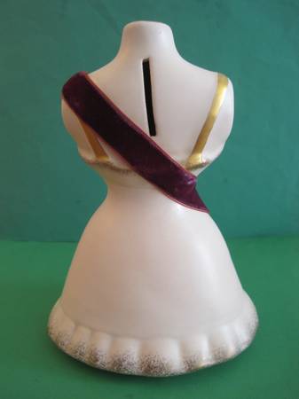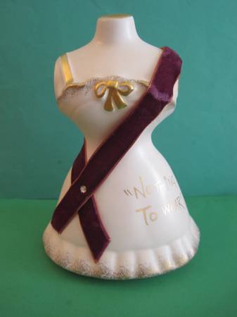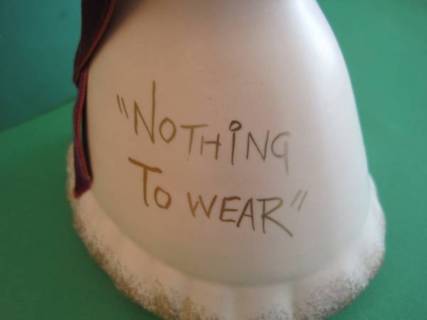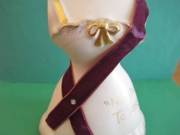 'NOTHING TO WEAR' 6.5" tall. Ceramic with velvet sash and rhinestones. No stopper.