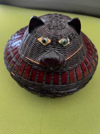 Vintage Cat-shaped woven strow wicker basket, likely from the mid-20 - $50 (lower pac hts)