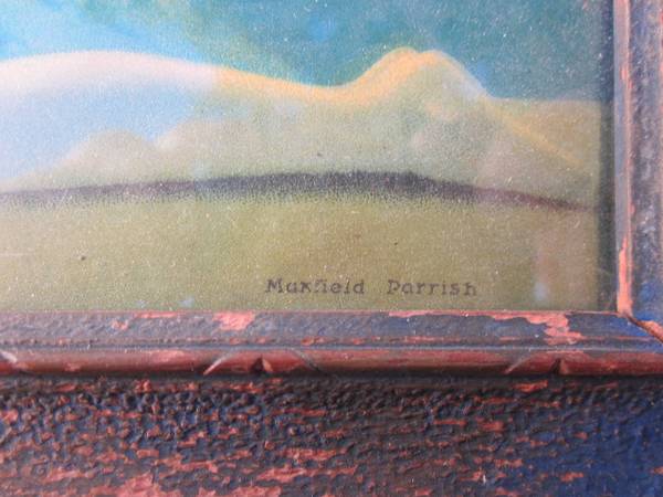 Frame is 14 and 1/2 by 21 and 12 inches. Small chip in frame Printed by the House of Art New York Probably 1924
