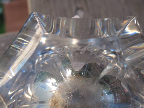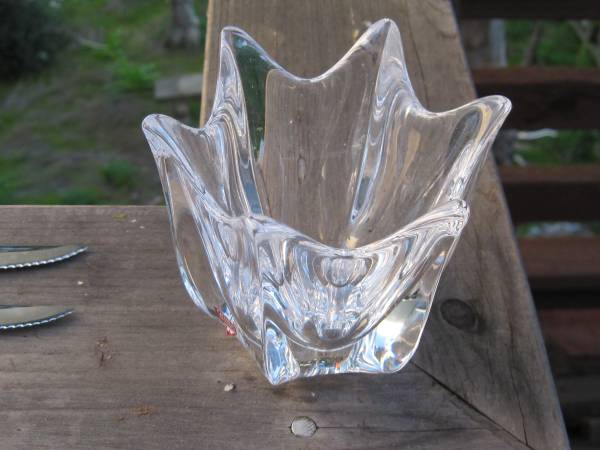 It is 4 inches tall and 5 inches wide. Swedish art glass