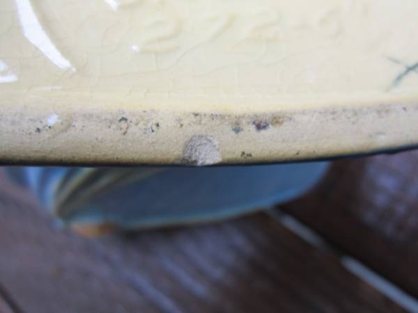 It is 6 inches tall and 6 and 1/2 inches wide. Has tiny chip on base