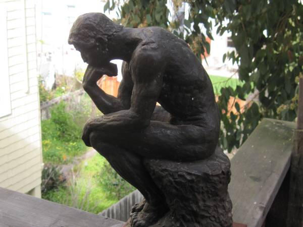 It is 16 and 1/2 inches tall, 7 and 1/2 wide and 10 inches deep. Appears to be plaster with a bronze patina