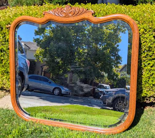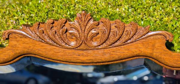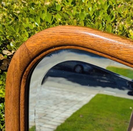 tasty art Noveau tiger oak mirror--hand bevelled glass--