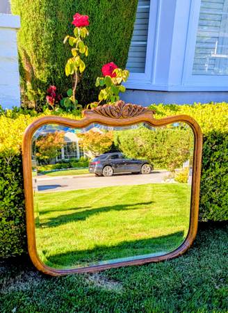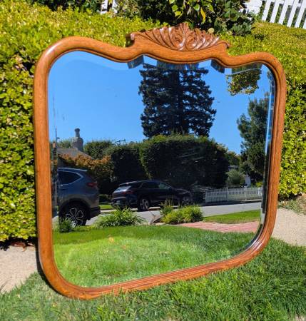 mirror glass has been removed, cleaned thoroughly, and re-installed securely--new eye screws and wire installed to ensure hanging securely