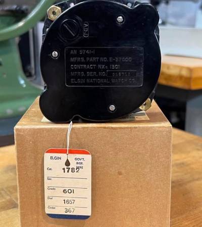 Up for sale is a new old stock Elgin 37500 8-Day Aircraft Clock. The clock is NOS and never installed, it comes in the original box with operating instructions. Due to its age (80 years old) it's been serviced by Historic Aviation Supply. The clock has a spotless 16 jewel 8-day movement with the date function, the dial and hands do not contain any Radium and never did. Not many of these NOS timepieces left so don't miss out!