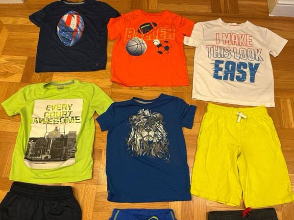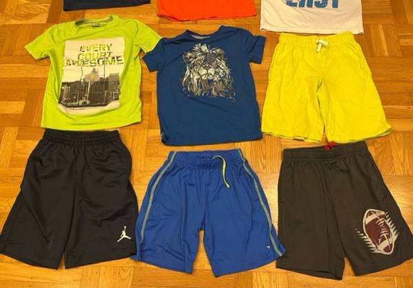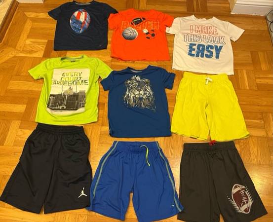Boys Clothes – 9 Pcs – Big Kids Size 7/8 89% of the clothes are lightly worn few times. Majority of the clothes are Size 8 with two pieces are Size 7/8 - 5 Tops - 4 Shorts - Good condition - Pet and...