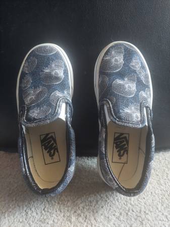 VANS Classic Slip On Wireframe Skull Black Canvas Sneaker US kids size 10.5