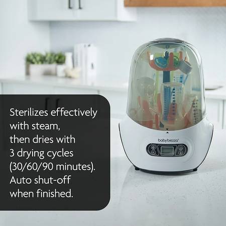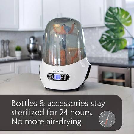 Hi. I'm selling my 4-in-1 Baby Brezza Baby Bottle Sterilizer and Dryer Machine. In like new condition. Automatically sterilizes & dries bottles, pump parts and other accessories in 1 easy step – saving you valuable time! This combo machine uses natural steam to kill 99.9% of bacteria, then automatically dries with hot air and shuts off when finished. It eliminates germs, bacteria, mold and the yeast that causes thrush. Products stay sterile for up to 24 hours when left in the unopened sterilizer. You can choose from 7 options including 3 dryer settings (30, 45 and 60 minutes – unlike other sterilizer dryers that only offer 1 dryer setting) and 4 functions (Sterilizer and Dryer, Sterilizer Only, Dryer Only, or Storage Rack). It has a large universal capacity, holding 6 bottles, pump parts and accessories from any brand, and its modern design will look great on your counter. Plus, it has an easy-to-use LCD control panel and a stainless-steel heating plate that protects against rust and hard water build-up. Dimensions: 16.5 Inches (H) x 11.5 Inches (W) x 11.5 Inches (D). Paid over $120. Selling now for $90. Cash only