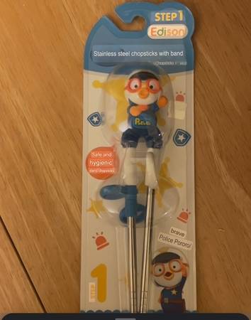 Pororo Training Chopsticks Kids Children Right Handed Police Firefighter Edison Edison Non-Slip Right-handed Baby Training for Beginners with Silicone Rings 3 years and up
