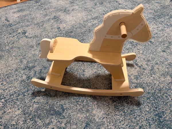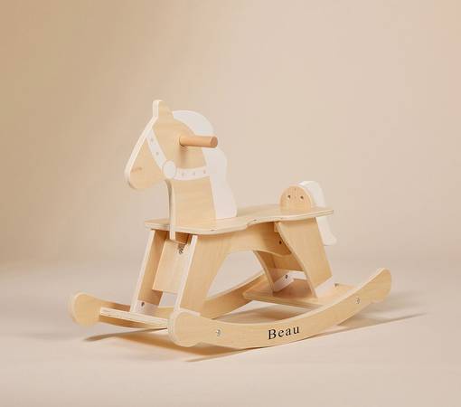 Sized for little riders, this rocking horse adds additional fun to a nursery, bedroom or playroom. Features wood handles and precision-shaped runners for a smooth, secure and gentle rocking motion.