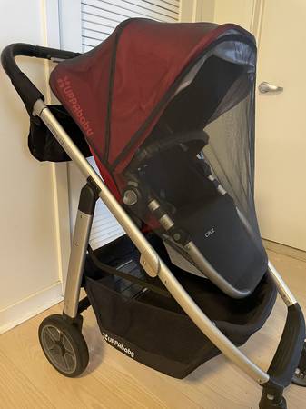 Full set of Uppababy’s premium Cruz stroller with rumble seat, V2 bassinette and a full range of accessories. Complies with Motor Vehicle Safety Standards (FMVSS) and is certified for use on planes. Includes the compatible carseat (shown), however the car seat expired in 2024 (so this set's overall price has been dropped to reflect that).