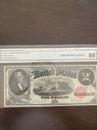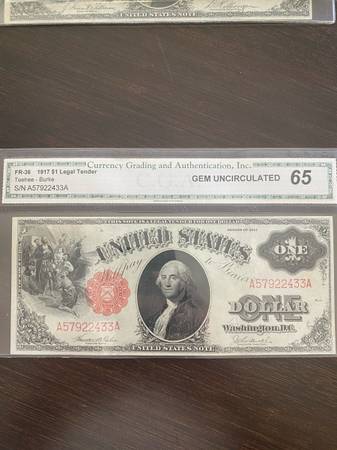 1. 1869 50c Lincoln fractional currency - 200$ 2. Very fine 30 - 1880 Fr. 35 1$ - 500$ 3. About new premium paper quality (PPQ) 58 - Fr. 947 1914 $10 Dallas - 600$ 4. Gem uncirculated 66 - FR-56...