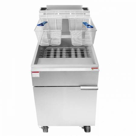 Introducing the Atosa Fryer, a high-quality restaurant equipment specifically designed to cater to the needs of busy commercial kitchens. Boasting an impressive capacity of 75 pounds, this fryer is ideal for high-volume frying. With five burners and standby pilots, it guarantees efficient and consistent cooking results. The temperature can be precisely controlled within the range of 200°F to 400°F, ensuring perfectly fried food every time. Safety is a top priority, which is why this fryer is equipped with a self-reset high temperature limiting device and a safety valve, providing peace of mind to both chefs and kitchen staff. The Atosa Fryer comes with two nickel plated baskets with coated handles, making it easy and safe to handle fried goods. The basket hanger keeps the baskets within reach, making the frying process even more convenient. What makes this fryer stand out is its innovative oil cooling zone located at the bottom of the tank. This feature helps prolong the lifespan of your cooking oil by preventing overheating and maintaining consistent frying temperatures. Built with a sturdy stainless steel structure and equipped with four casters, this floor model fryer offers both durability and mobility. It is cETLus and ETL-Sanitation certified, ensuring that it meets industry standards for performance and sanitation. When it comes to large-scale deep frying, the Atosa Fryer truly stands apart. Experience the power and efficiency of this exceptional piece of restaurant equipment today!
