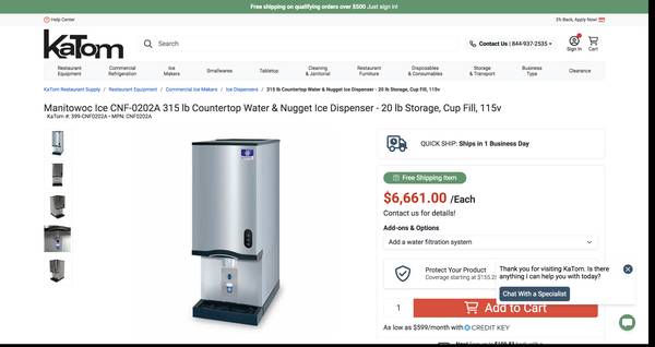 Manitowoc Ice CNF-0202A 315 lb Countertop Water & Nugget Ice Dispenser - 20 lb Storage, Cup Fill, 115v. Nice! Selling for $1800.
