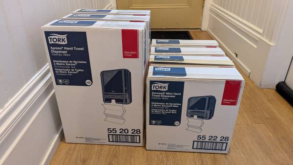 7x paper towel dispensers, $10 apiece: Tork Xpress Hand Towel...