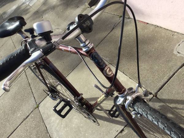 Mid 80's classic with a handlebar retrofit for a more comfortable upright riding position. You can also see a lot clearer in the upright position