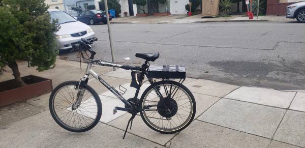I am converting regular bikes, 26 inches wheel mountain bike, road bike into 48 V - 52 V, 750 - 1500 watt 13 AH ( or higher ) hub motor or Bafang mid drive motor electric bike...or other power option lower or much higher.. Also 700c road bike can be converted.. Price for 700c is little higher by about 100 dollars ... Price for 26 wheels hub motor bike conversion is about 400 ,( will have battery inside a well designed secured bag ) ( optional for locked battery removable case with key + 100 ) plus 100 labor .. Price for 700c bike with 700c ( 27 inches motor wheel ) conversion is about 500, ( optional for locked battery removable case with key + 100 ) plus 100 labor.. Ebike power assist is standard for all ebike conversion...