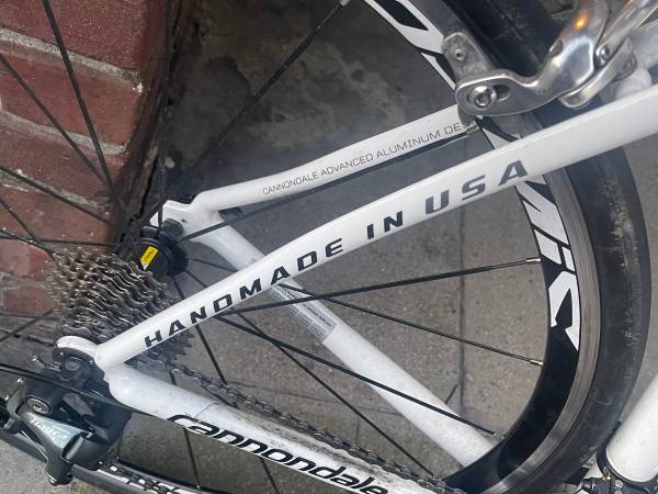 Immaculate never dropped. Low mileage CAAD9 Cannondale Road Bike 54cm. Custom Mavic Cosmic wheels with Zaffiro Pro Slicks. This bike originally came with the old non Aero Tiagra Shifter/brakes. I bought a brand new Aero Tiagra 4700 group set. Shimano GRX cranks. The frame is handmade and the last USA made Cannondale before they started making them overseas. Bike is extremely stiff and responsive. Smooth welds no ugly weld marks on the joints. Ultegra brakes. Fizzik saddle. Lizard skin bar tape was $75. You’re not going to find a better bike for the price. $1200.