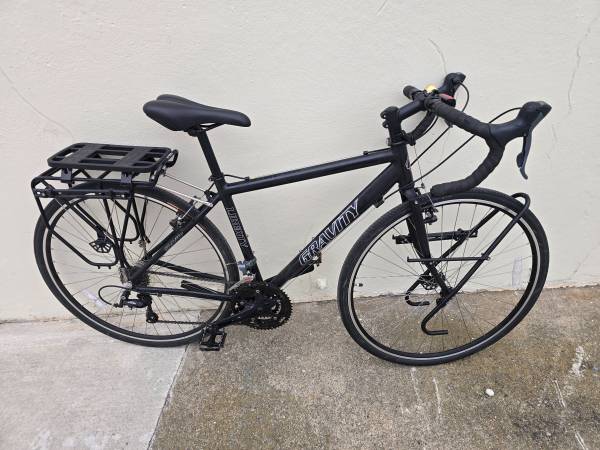 Has Surly forks and racks. Ortleib waterproof panniers included. Very low gear for SF hill climbing. Also includes a Yepp mount for a kid seat on the back. Great city commute bike for a parent with one kid. Just add the Yepp kid seat! Could also be a good long distance travel bike if you want to add rear bags.