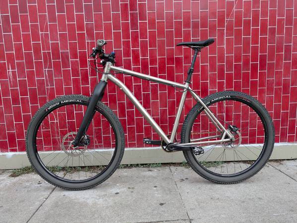 Titanium hardtail built for simplicity and reliability. This is a 2017 Lynskey Ridgeline 27.5 set up singlespeed with a Trickstuff eccentric bottom bracket. The frame is used but in great shape and built to last a lifetime.