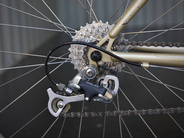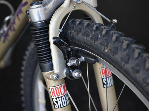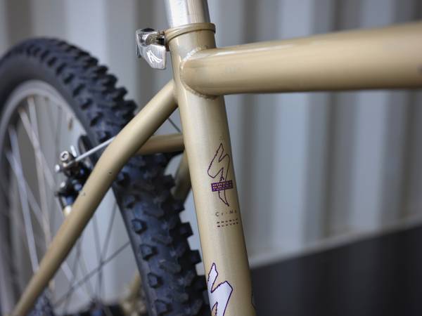 The “FS” designation stands for Front Suspension, and this bike features the original RockShox Mag21 magnesium fork — a legendary fork of its time that still has life in it. The stunning gold paint remains in excellent condition, making this bike as visually striking as it is historically symbolic: For collectors, it’s a gold painted bike that captures the golden age of Specialized’s steel mountain bikes.