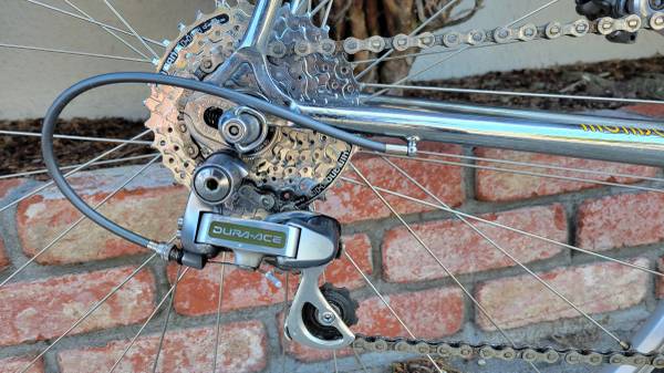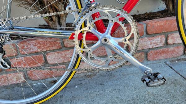 Italian handcrafted classic 1990's road bike in great condition. Columbus SLX steel tubing, full Dura Ace components, Shimano SPD, 8-speed cassette, 53x39 crankset, Mavic wheelset. Extra parts include Flite saddle, Look pedals, Torelli wheelset, tubes and tires.