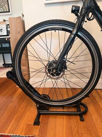 For sale is a Trek District 4 Equipped bike modified with a Hilltopper Horizon thumb throttle powered front hub wheel. This is a Medium version ideal for people 5’5” to 5’9”. The bike has a gates belt driven system with internal gears making it perfect for wet weather and chain reliability. The original bike has a dynamo hub which is included with bike.