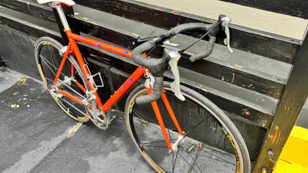 Custom hand-built, tig-welded by The Coleman Brothers in Chico, CA in 1998. Columbus tubing with tear drop shape down tube. Stainless steel Ritchey drop outs. Rolf aerodynamic wheels. D-A 8 speed components. Custom paint job by Air Art in Chico, CA. Includes spare Kestral carbon fork.