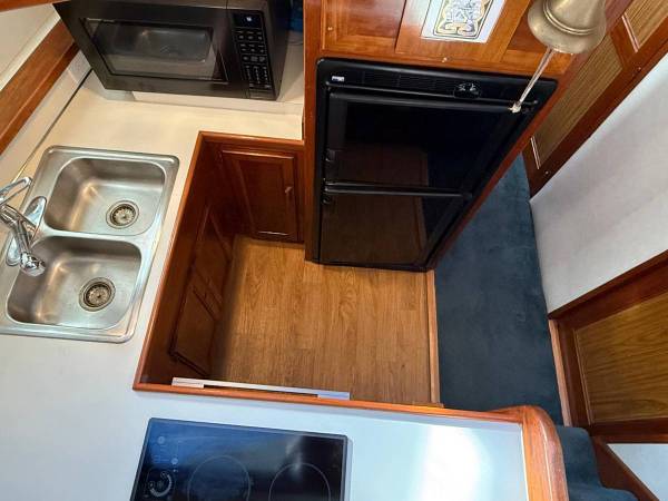 Galley and the main salon have new full-size Norcold fridge - freezer each. Newer dishwasher and induction glass-top stove. The stove works, but disconnected, to prevent accidental usage.