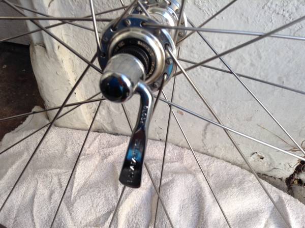 Dura Ace 7400 Mavic SUP Reflex Front Wheel Like New... All perfect 700c front clincher wheel all true and smooth bearings. Was custom built years ago 28 Dt 15 gauge spokes. .. Only real wear is Mavic stickers has some nicks.... Brake track perfect. Hubs skewer are super clean look new..skewer spring are shiny.. Super smooth and true..Perfect for your vintage bike eroica..Selling for $175 firm pickup in San Francisco. Email or call if interested ...