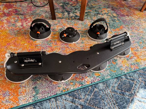 Selling my SeaSucker bike rack. Fits two bicycles easy. This is a great bike rack that I've had for a long time. Selling as I just don't need it anymore. It comes with two rear pucks for the back...
