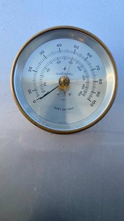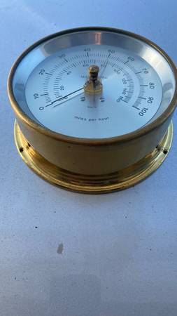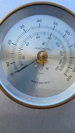 Measures direction and speed (up to 120 mph). The instrument features a tarnished brass case, pristine glass, clean dials and hands and back cover connection screws that works with a 12-volt connection. The MPH instrument, when connected, is designed to light up direction LEDs at north, east, south and west as well as northeast, southeast, southwest and northwest. A gust register is featured with the instrument.