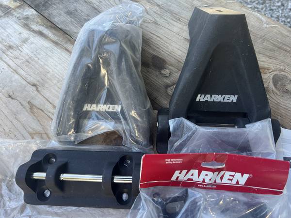 Harken New, never used. This is the 32mm "big boat" Harken mainsheet traveler set. Everything is included articulating risers, Double sheave cam cleats and the 32mm high beam 1.8 m track. (You will need the center car traveler you chose for your set-up possibly T3242B) This set retails for about $2500 before taxes. I don't have my boat anymore, I'm cleaning out my storage.