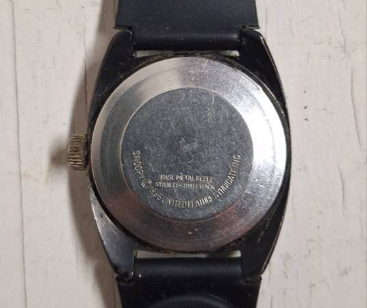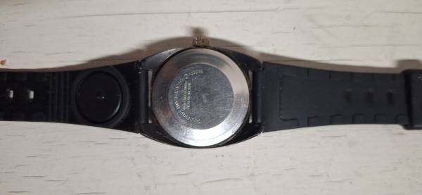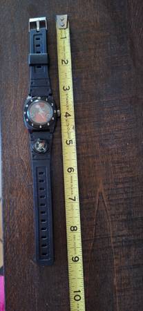 1 1/4 case black strap . Crystal shows very slight wear to case and strap with a few light scuffs to the crystal stainless steel back.