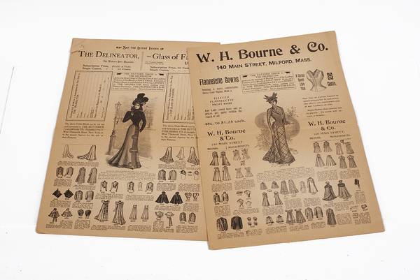 October and December 1899 Butterick Metropolitan Fashion catalogs. 7 pages each. Very fragile and were stored folded in half. They are splitting in the middle but still holding up. If shipped I will fold again and put in clear sleeves