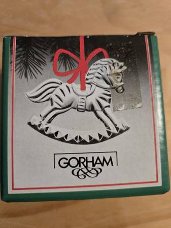 Gorham Full-Lead Crystal Holiday Rocking Horses x 2, 1 in original packaging & 1 with ribbon hanger. Does not include stand.