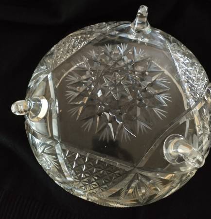 Elegant, fancy etched, crystal candy or jewelry dish or? with lid and feet.