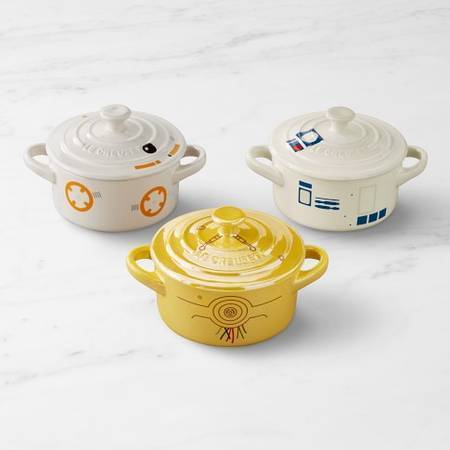 Hi. I'm selling my Le Creuset Stoneware Mini Round Cocotte, Star Wars Droids, Set of 3. In new condition. Never used. No box though. Inspired by a galaxy far, far away, these Star Wars Droid mini coquettes are dutiful little companions in the kitchen. Our special-edition set by Le Creuset features three cocottes emblazoned with designs cues from R2-D2, C-3PO and BB-8, and are ready for any culinary adventure. Their primary mission: baking and serving individual dishes like pot pies, pastas and desserts. Set of three 8-oz. limited-edition mini cocottes with R2-D2, C-3PO and BB-8 inspired designs. High-fired stoneware is exceptionally strong and ensures even heating with no scorching. Durable porcelain enamel-glaze finish is easy to clean and resists chips, scratches and stains. Tight-fitting lid seals in moisture so foods cook to a tender finish. Safe for oven, broiler, freezer and microwave. Will not absorb food odors or flavors. Ideal for oven-to-table serving. Selling for $300 for all 3 or $130 each. Cash only