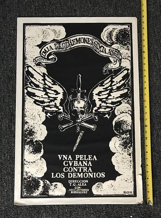 This is an Original Vintage 1971 Poster By NICO, one of the top five artists of this art form in all of Cuba. Original vintage movie poster for the Cuban drama "A Cuban Fight Against Demons" (Una Pelea Cubana Contra Los Demonios) directed by Tomas Gutierrez Alea starring Jose Antonio Rodriguez, Raul Pomares, Silvano Rey and Olivia Belizaires.