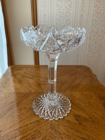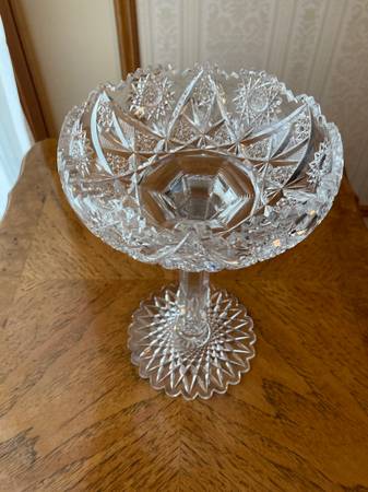 Rare Vintage American Brilliant Cut Glass Crystal Pedestal Compote Expanding Star, Sawtooth, 24 Point Hobstar Scalloped Base, Excellent condition - was kept on display in a curio cabinet Cash only
