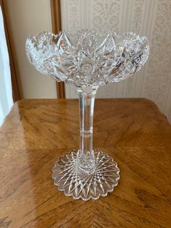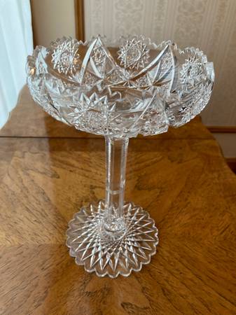 Rare American Brilliant Cut Glass Crystal Pedestal Compote Bowl -...
