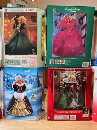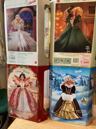 1988 - 1997 Set of 10 Happy Holiday Christmas Barbie Dolls, NIB:1 Owner I purchased this set of 10 Happy Holiday Barbie Dolls new decades ago, never taken out-of-the-boxes Kept stored away from...