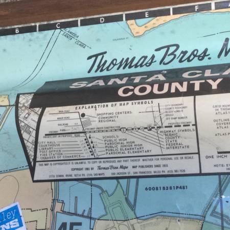 Vintage 1981 Thomas Bros. Wall Map Santa Clara County