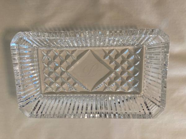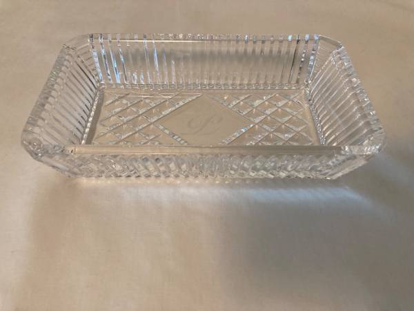 Waterford Crystal Rectangular Mint or Jewelry Tray, Monogrammed with "P" - $30