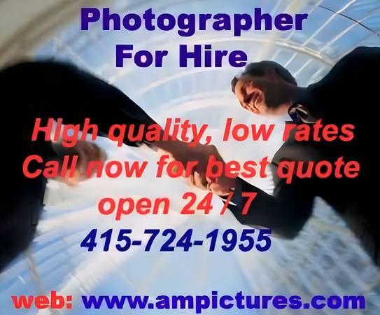 As a freelance professional photographer / videographer I am available at any time, 24/7/365. Just give me a call for a friendly consultation and quote.