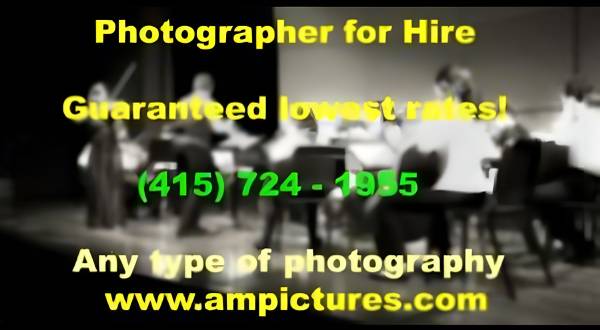 I have over 25 years of experience as an established professional photographer and also as a videographer / cameraman / editor. I am available for your project or event even on a short notice at very reasonable rates.