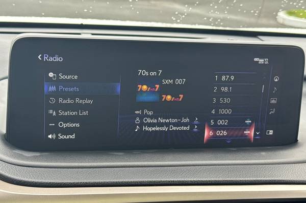 ABS brakes, Automatic temperature control, Rear window defroster, Rear air conditioning, Front anti-roll bar, Low tire pressure warning, Speed control, Radio data system, Remote keyless entry, Electronic Stability Control, 4-Wheel Disc Brakes, Tilt & Slide Moonroof/Sunroof, Security system, Panic alarm, Front dual zone A/C, Power windows, Bumpers: body-color, Power door mirrors, Power Liftgate, Air Conditioning, Emergency communication system, Cold Weather Package, Rear anti-roll bar, Premium Package, Auto High-beam Headlights, Steering wheel mounted audio controls, Four wheel independent suspension, Overhead airbag, Navigation System, Rear side impact airbag, Brake assist, Traction control, Auto-dimming door mirrors, Driver Memory, Dual front impact airbags, Power steering, AM/FM radio: SiriusXM, Exterior Parking Camera Rear, 9 Speakers, Knee airbag, Dual front side impact airbags, Occupant sensing airbag, CD player, Speed-sensing steering, Heated door mirrors, Anti-whiplash front head restraints, Power driver seat, Radio: AM/FM/CD Lexus Display Audio, Fully automatic headlights, Delay-off headlights