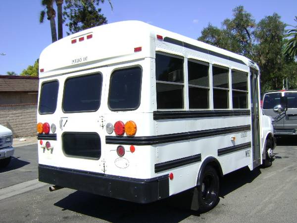 2008 Chevy Express G3500 15-Passenger School Bus ONLY 35,000 LOW MILES! 1 Owner Government Owned & Maintained, 1-Ton Dually! 12,300 LBS GVWR, 15-Passenger Seating Van, Great for RV Camper Recreational Cargo Use! Front & Rear Air Conditioning ***BRAND NEW TIRES*** Vinyl Seats & Vinyl Flooring for Easy Clean-Up, LOW LOW MILES! ONLY 35,000 MILES! Dual Rear Wheels, V8 6.0L Gas Engine and much more. Give us a call at 951 735-6269 or toll free at 1-877-826-7253. Were located in Corona, California but can assist delivery to the Bay Area.